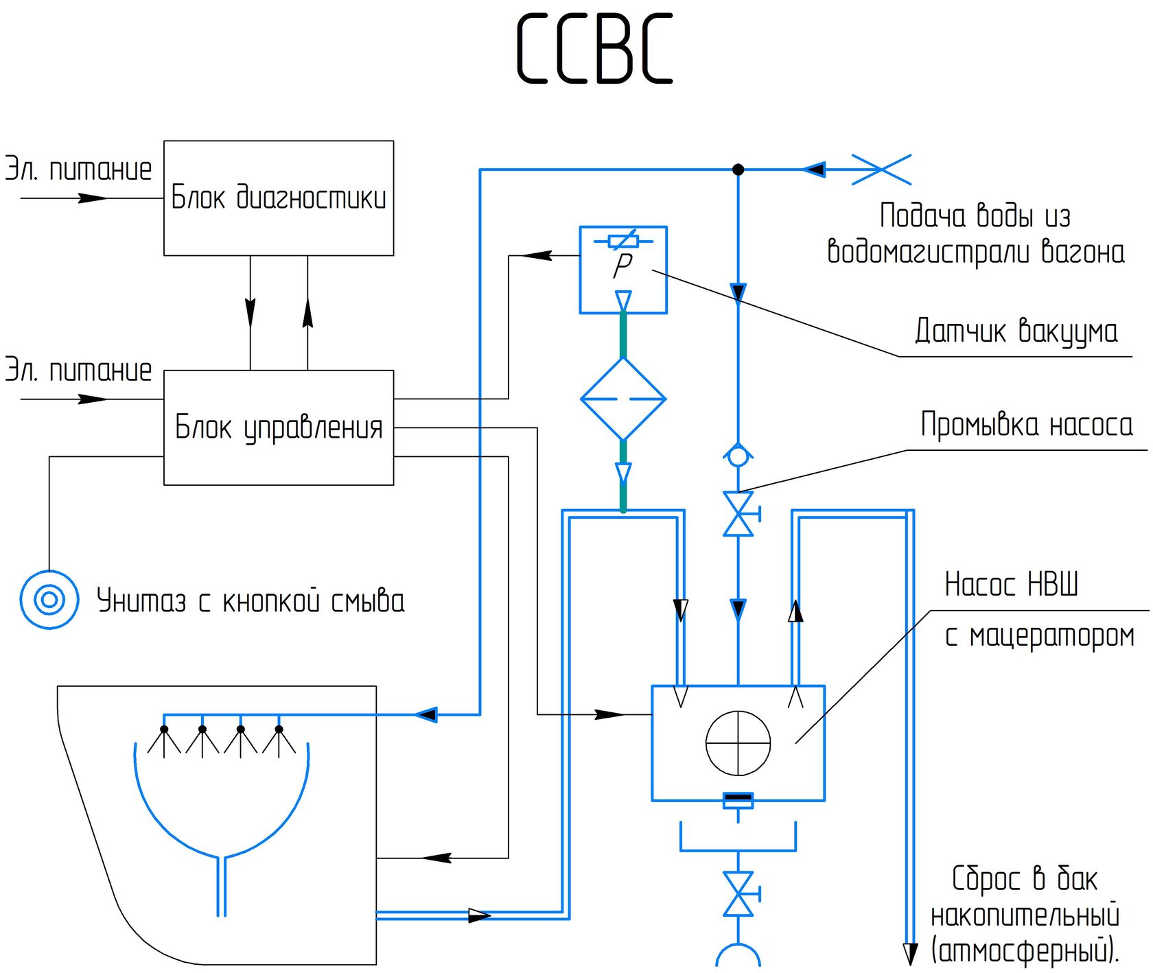 Новейшая разработка ЭЧТК «КУРС-В» для пассажирских вагонов включает в себя «Сточную санитарную вакуумную систему» и «Станцию переработки сточных вод».