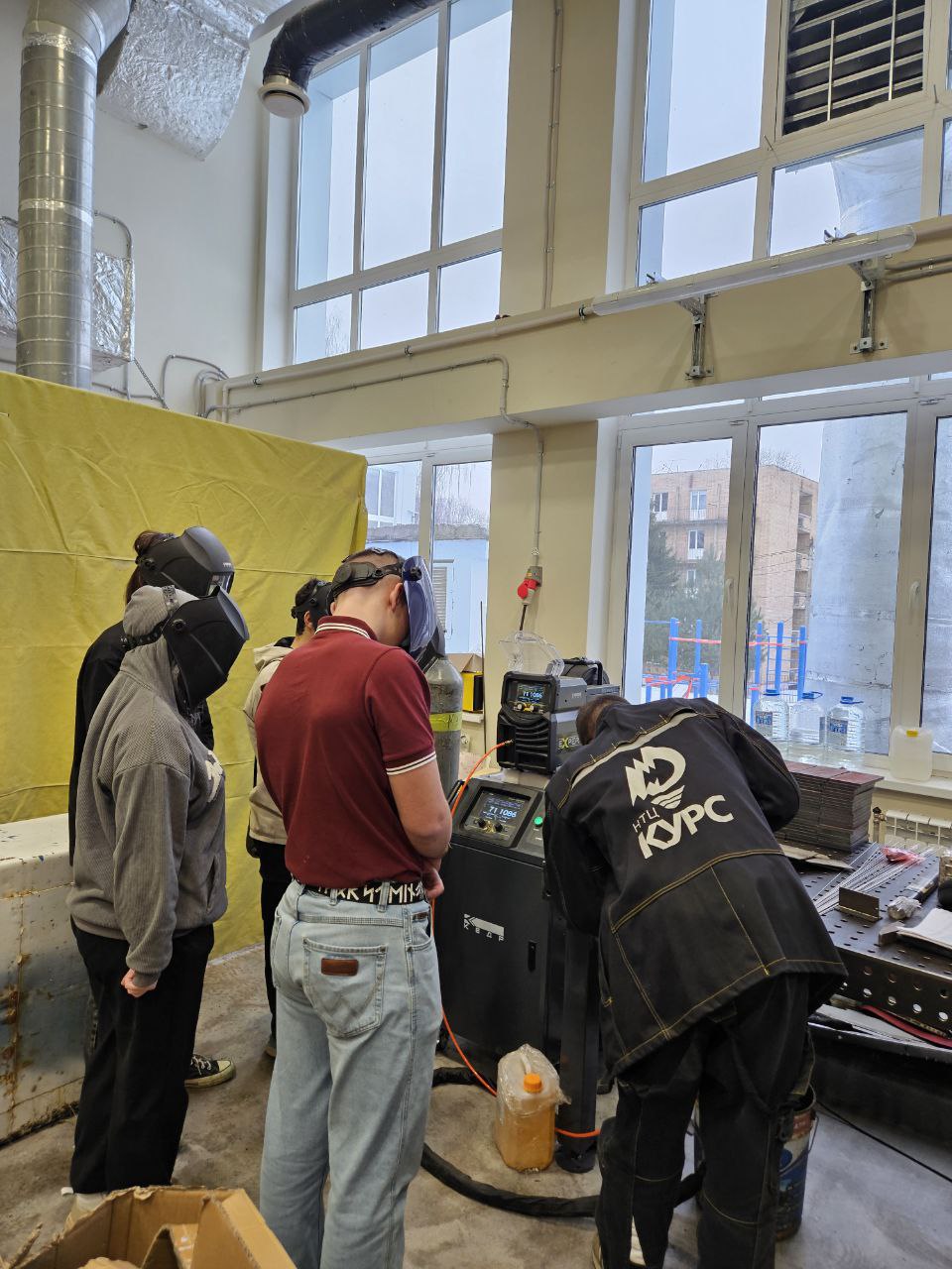 Представители компании ознакомили с техническим оснащением «Сварочной лаборатории» и рассказали студентам про особенности проведения сварочных работ на предприятии, ознакомили с технической документацией производства, и показали на практике «тонкости» в изготовлении швов на лазерной сварке и аргонодуговой сварке.